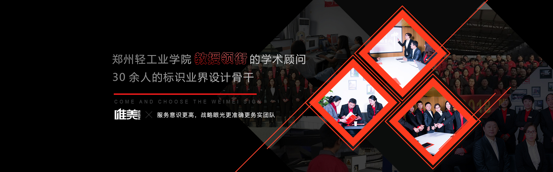 鄭州唯美標識設計制作有限公司是一家集標識系統(tǒng)開發(fā)、設計、制作、安裝、售后服務于一體的專業(yè)化標識公司。 13年專注標識行業(yè)定制服務,已成為地產住宅、商業(yè)廣場 、商辦公務、醫(yī)院系統(tǒng)、學校文化、工業(yè)園區(qū)、旅游景區(qū)、酒店餐飲、銀行金融等多個領域的提供標識系統(tǒng)解決方案公司。